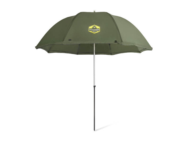 Tökéletesen megvéd a kellemetlen napsütéstől, a reggeli harmattól, de még a komolyabb csapadéktól is. A jobb szélstabilitás érdekében négy rögzítőkötéllel van felszerelve. Az esernyő varrásai vízálló szalaggal alaposan le vannak ragasztva, hogy nagy eső esetén is 100%-os vízállóságot biztosítsanak.A teljes kerület mentén meghosszabbított oldalsó falnak köszönhetően minden oldalról védve lesz a kedvezőtlen időjárási körülményektől. Az oldalfalon egy ajtó található, amely kiváló minőségű cipzárral van ellátva. Ezenkívül az ajtón egy átlátszó műanyag ablak is található, amely lehetővé teszi, hogy esőben is láthassa a horgászbotokat az ernyő alól.Az oldalfal alsó része hurkokkal van ellátva, és a csomagban található leszúrókkal együtt az ernyő a talajhoz rögzíthető. Az esernyő magassága és dőlésszöge igény szerint állítható, ami durvább terepen is megkönnyíti a rögzítést.Technikai paraméterek:Maximális esernyőmagasság (a kupola tetejéig): 200cmMaximális esernyőmagasság (oldalfallal együtt): 215cmA kupola átmérője: 250 cmSzállítási méretek: 135x12x12cmSúly: 3kg